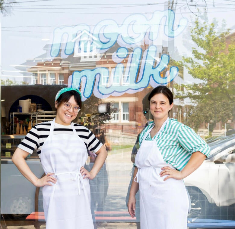 Moonmilk is friendsip duo, Elysia Leung and Sarah Davignon. They've been making and baking at some of your fave ice cream and bakery spots in Toronto, the GTA, and beyond, for over two decades.Together they've done "Pancake Island" pop-ups, hosted booths at city festivals, and made ice cream out of a coach house in Parkdale.Today, Moonmilk has grown into a scoop shop and bakery, with everything made in-house: cakes for your party and pints of Philadelphia-style ice cream. Grab scoops and slices in the shop! Flavours are punchy, unique, but full of nostalgia.Moonmilk also uses the space to host private parties and free public events like story-time for kids, Karaoke jams, and pop ups with other businesses (ranging from second-hand clothing to burgers!).Moonmilk is more than just your local cakery, bakery, and ice cream makery. Moonmilk is for all.Find it all at out takeout retail shop at 1695 Dundas St. West, Toronto, between Lansdowne & Brock, for scoops, pints, slices, cakes, milkshakes, cookies, and more desserts & treats.